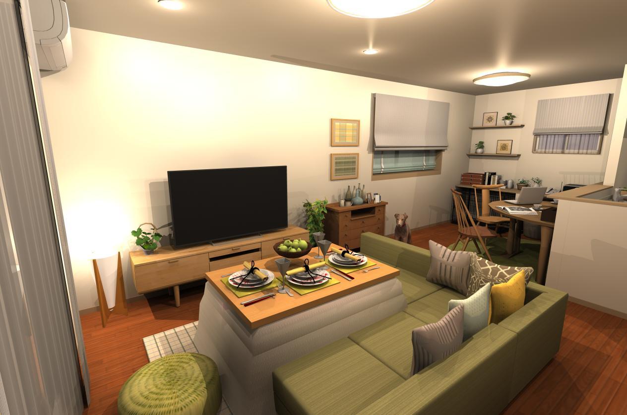 ずんぐり縦長 10畳ldkを和風モダン的にレイアウト コーディネートした参考例 リビングのコーディネート レイアウト