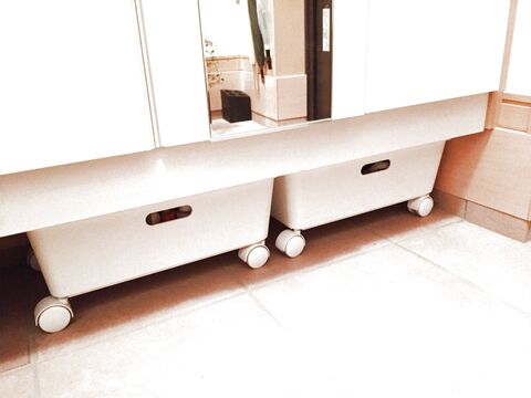 下駄箱下の収納アイデア 100均のキャスター台ですっきり玄関 ぴたっとぐらし
