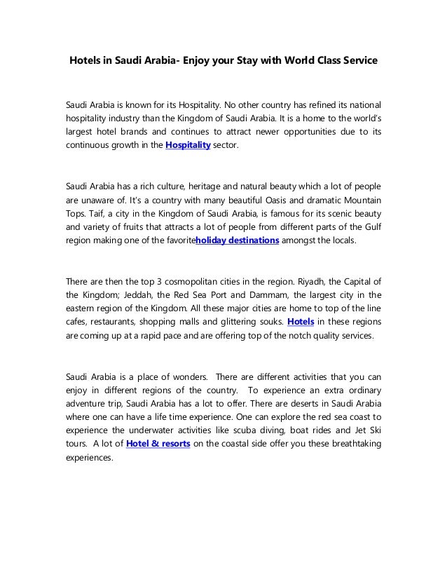 Hotels In Saudi Arabia Enjoy The Holiday With World Class Service