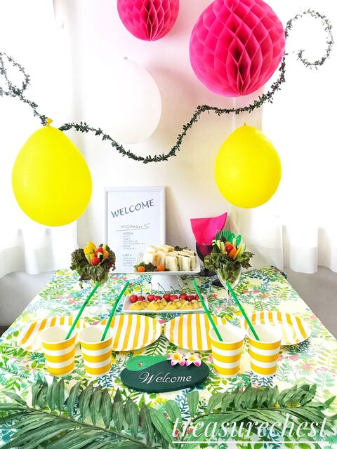 100均テーブルクロスが大活躍 夏にぴったりトロピカルパーティー 暮らしニスタ